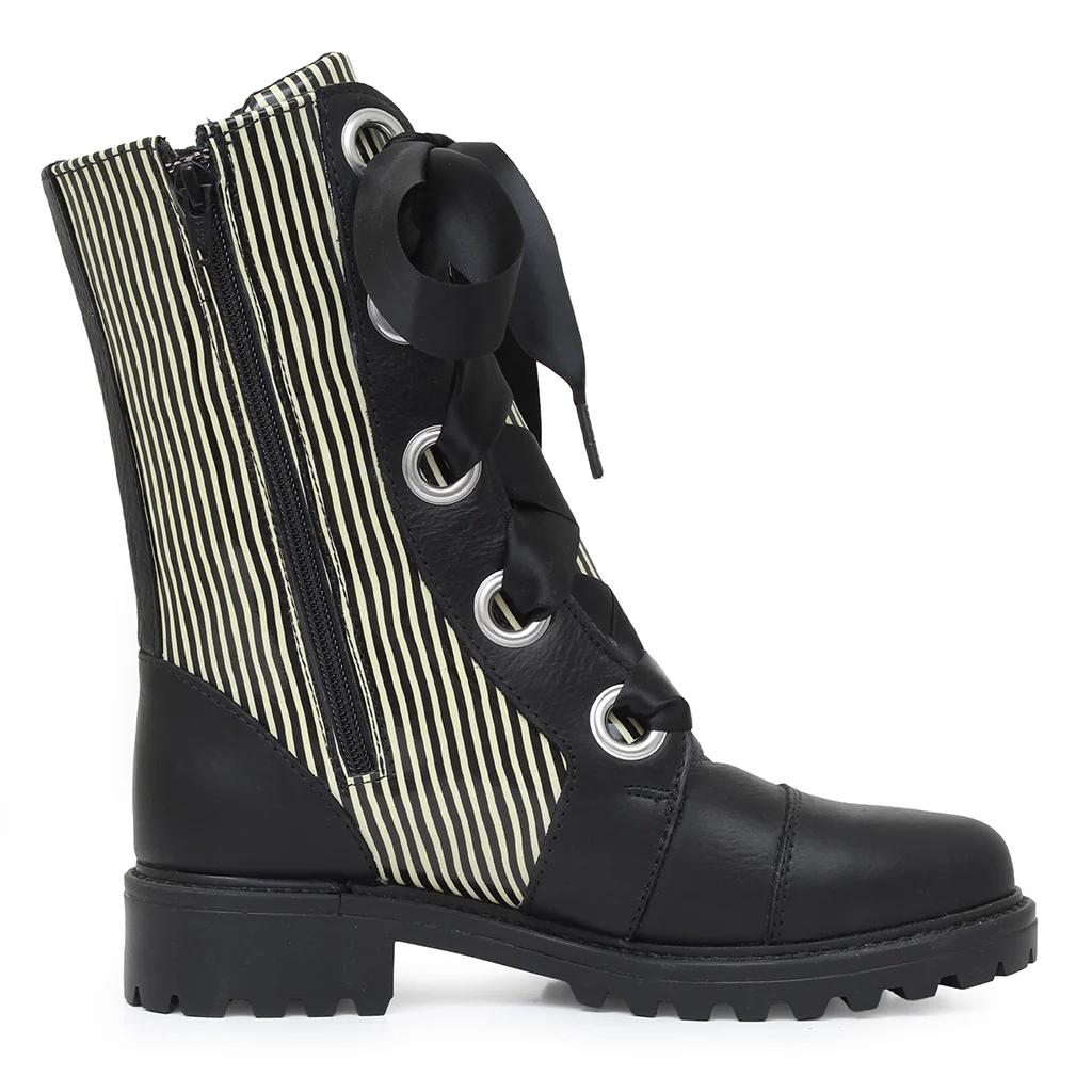 Fêtez le bonheur avec Unity, la botte audacieuse et incontournable de Martino, une conception unique destinée aux passionnées du romantisme. Élaborées avec minutie à Québec, ces bottes sont ornées de motifs éclatants et de larges rubans de soie,